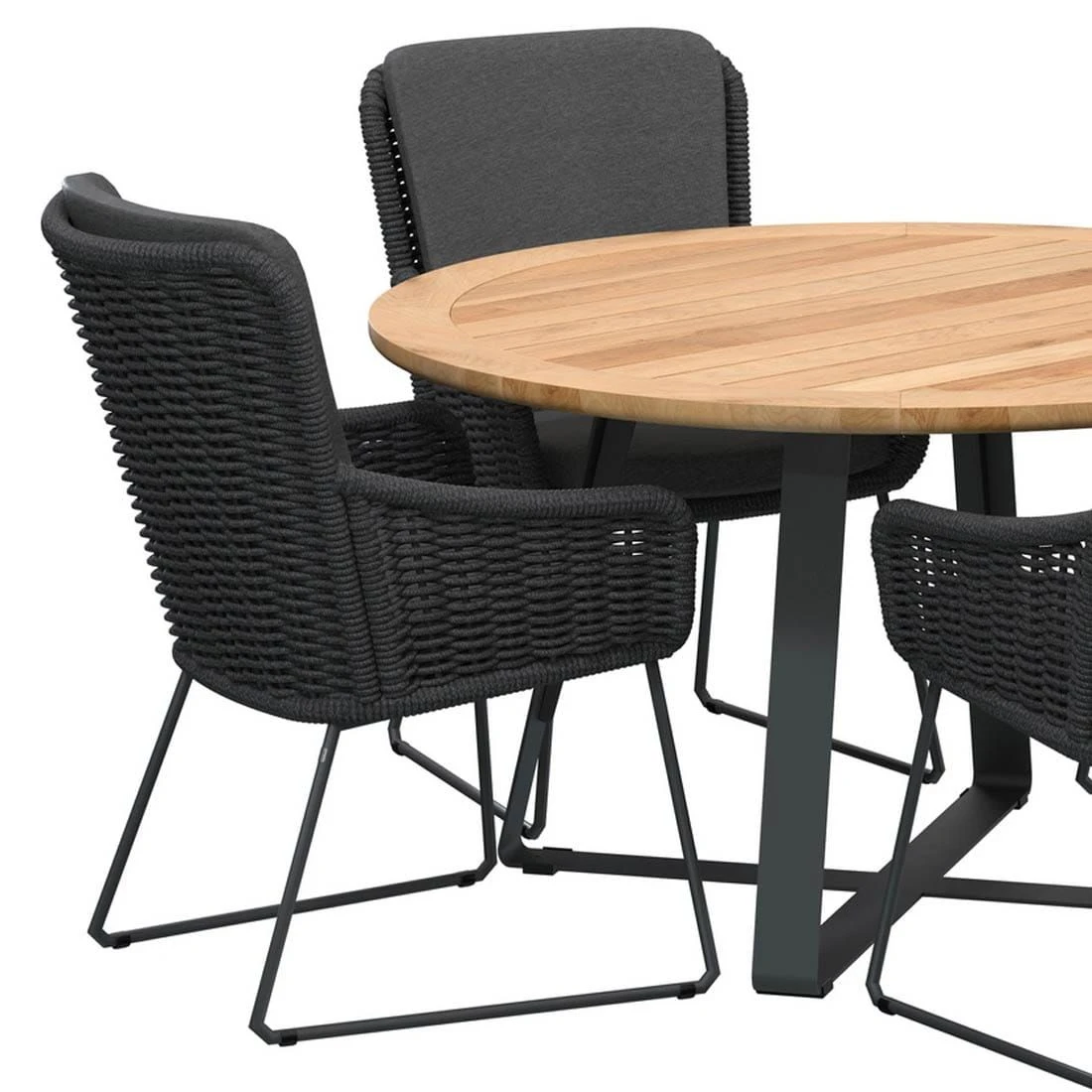 Um das stabile Edelstahl-Gestell der Sitzmöbel wird ein hochwertiges Rope-Geflecht gespannt.