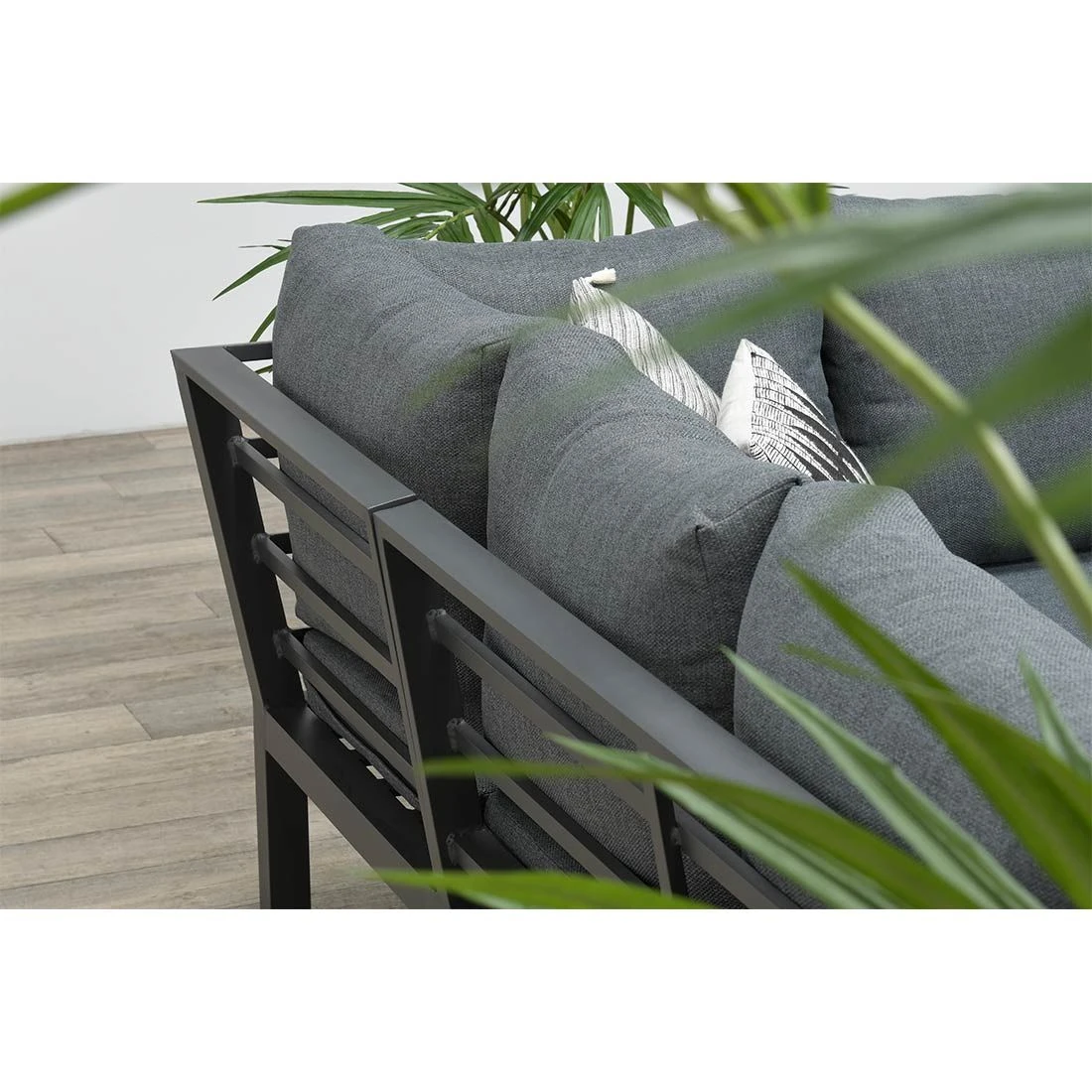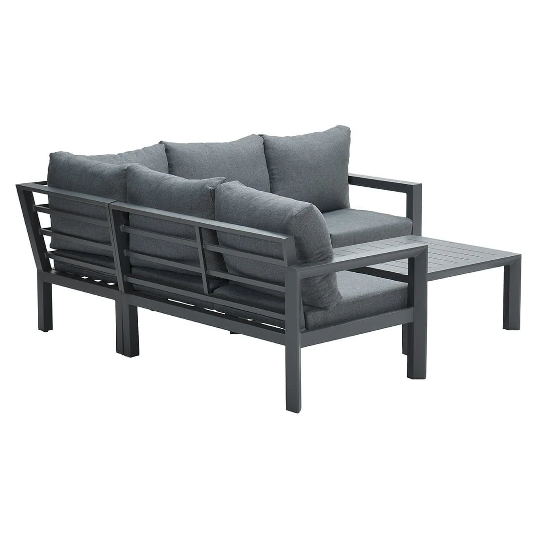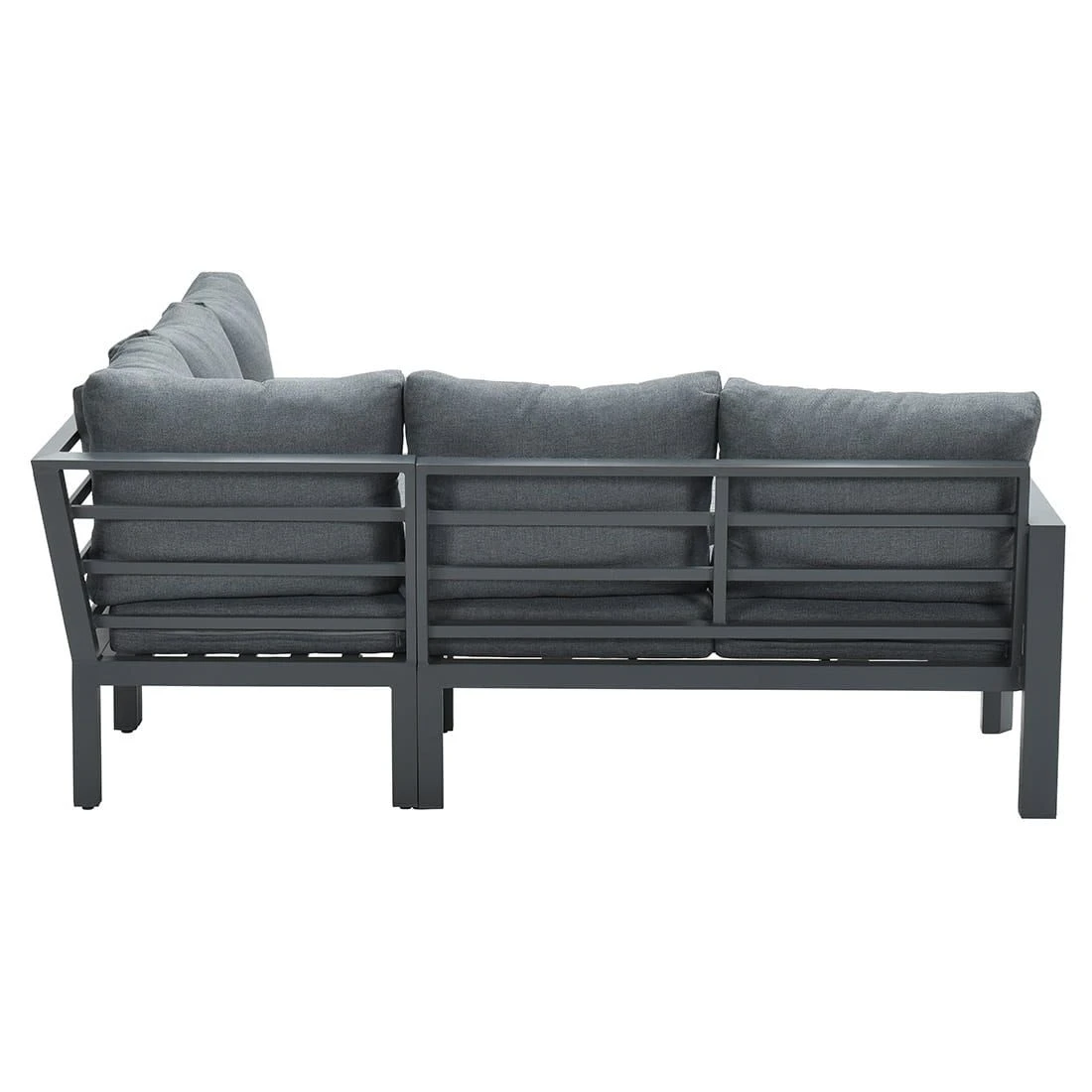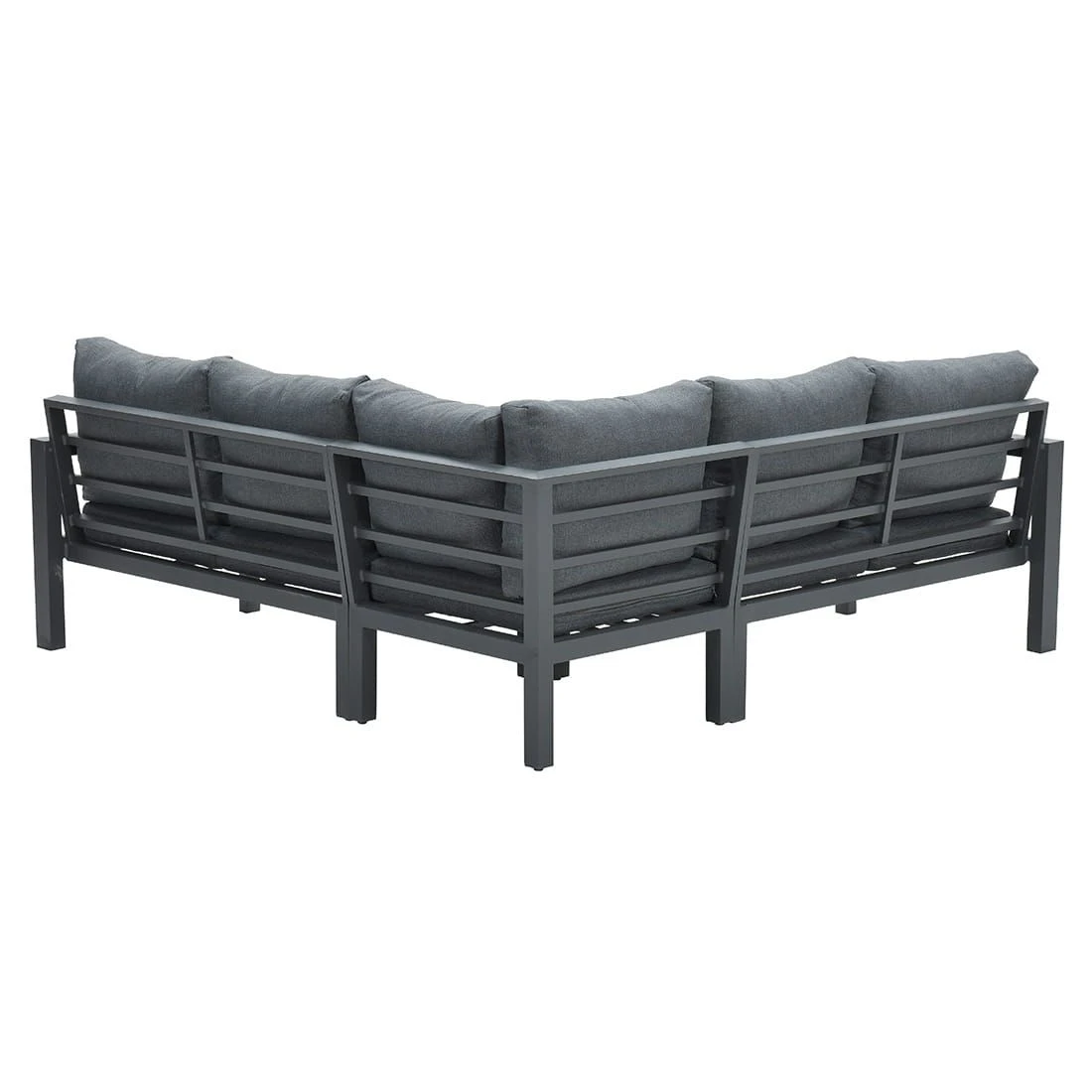 Das Gestell und die Tischplatte sind aus Aluminium gefertigt. Damit die Ecklounge optisch ansprechend ist, sind das Gestell und die Tischplatte im Farbton Carbon Black gehalten. Der Bezug der Ecklounge ist aus Polyester gefertigt. Für eine längere Haltbarkeit empfehlen wir bei stärkerem oder lang anhaltendem Regen, die abnehmbaren Kissen im Innenraum zu lagern. Die Farbe des Bezugs ist Mystic Grey.