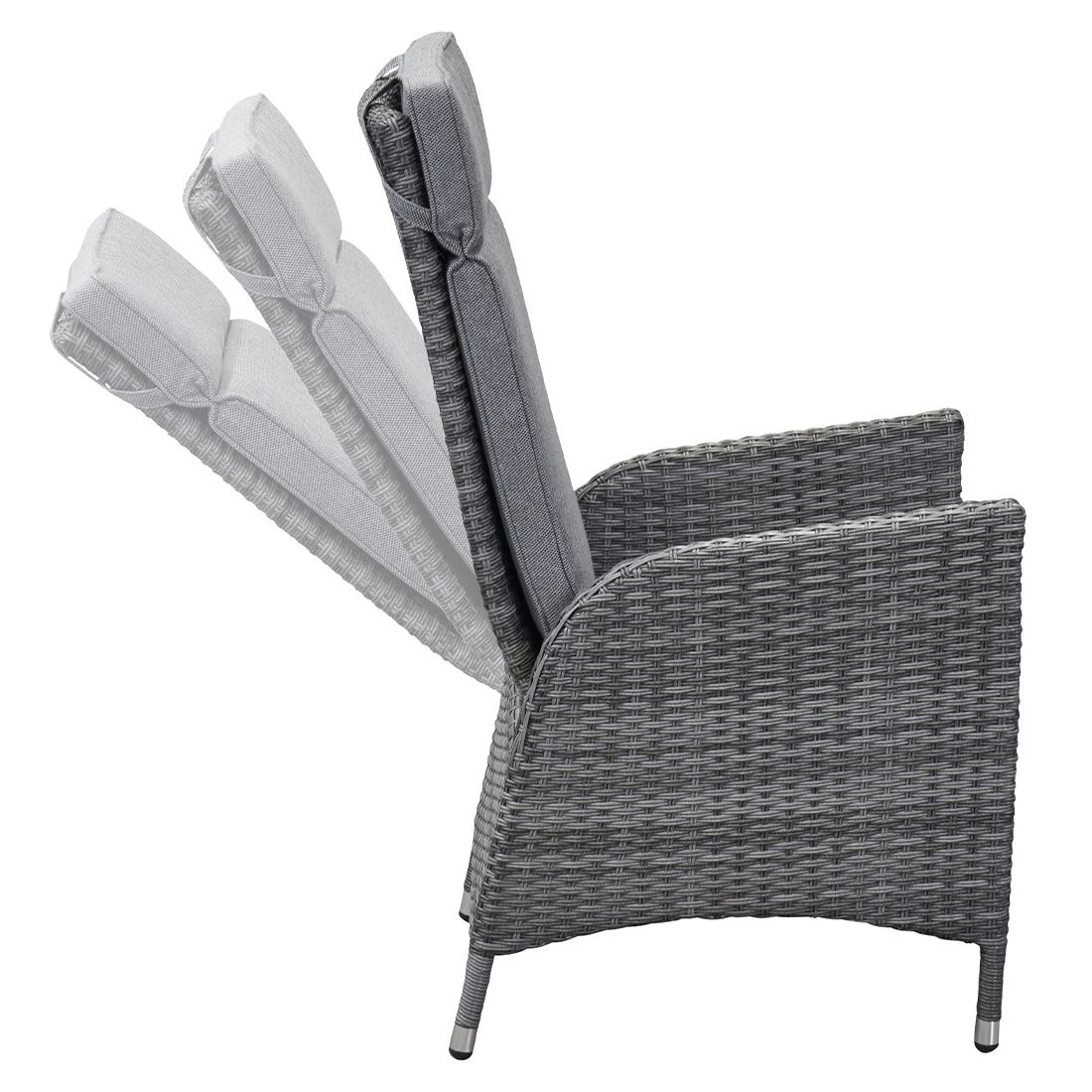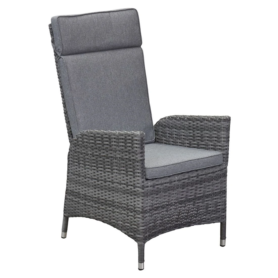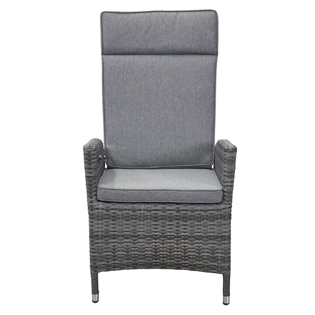 Das Gestell wird aus Aluminium gefertigt. Das geringe Eigengewicht des Materials macht den Loungesessel zu einem robusten, aber dennoch leicht zu transportierenden Sitzmöbel auf Ihrer Terrasse. Für eine attraktive Optik ist das Gestell im Farbton Silber gehalten. Die Sitzfläche des Loungesessels besteht aus modernem Polyrattan. Ein Material, das sich durch seine lange Haltbarkeit auszeichnet. Die Sitzfläche ist in ansprechendem Omega-Anthrazit gehalten. Als hochwertiges Material für den Bezug kommt ein Polyester-Stoff zum Einsatz. Er ist sehr strapazierfähig und bietet somit die idealen Voraussetzungen für den Einsatz im Freien. Farblich begeistert der Bezug in elegantem Salz & Pfeffer.