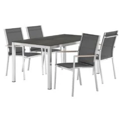 Die robusten Metallgestelle aus Aluminium sind pflegeleicht und garantieren gleichzeitig eine hohe Stabilität. Darüber hinaus gewährleistet dieses leichte Material, dass Sie die Möbel bequem transportieren können. Ein der Sitzmöbel ist die Bespannung der Sitzflächen mit Textilene in der Farbe Anthrazit. Dieses Material zeichnet sich durch eine hohe Robustheit gegenüber Hitze und Frost aus und ist leicht zu reinigen.