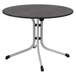 Für das Gestell wird robuster Stahl genutzt. Ein stabiler Unterbau und dabei gleichzeitig dekorativ ist das Säulengestell. Teakholz ist außerordentlich widerstandsfähig gegen Witterungseinflüsse wie Temperaturschwankungen, Nässe und Trockenheit. Kein Wunder, dass für den Gartentisch Nexor dieses hochwertige Holz als Material für die Tischplatte gewählt wurde. Farblich ist die Tischplatte in einem schönen Teak Recycelt gehalten. Der Gartentisch ist in seiner Form klassisch rund gefertigt.