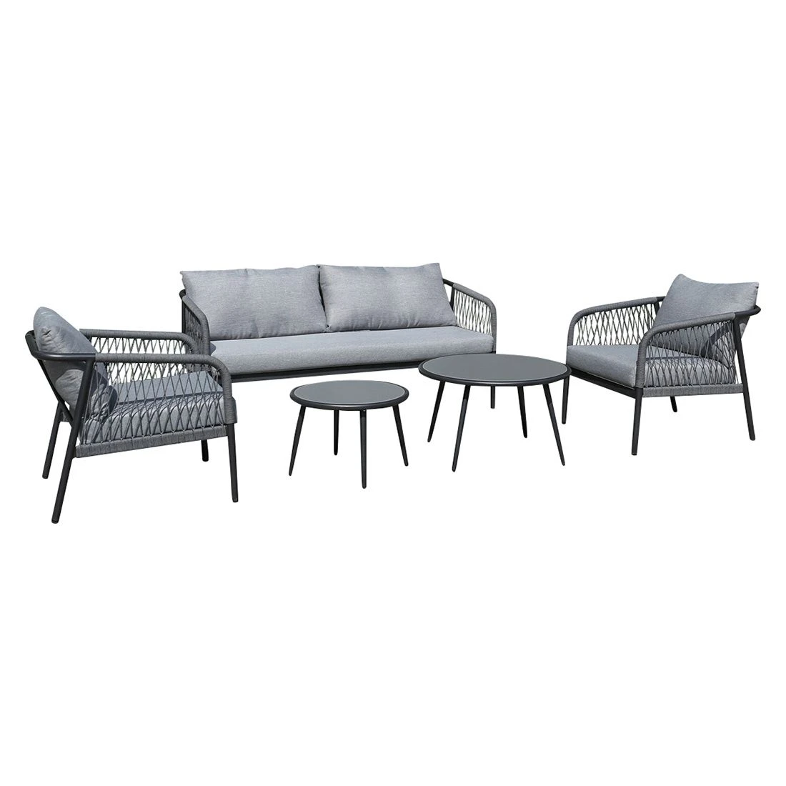 Damit das Loungeset optisch ansprechend ist, sind der Korpus, die Tischplatte und der Bezug im Farbton Hellgrau gehalten. Als Material des Gestells hat der Hersteller qualitativ hochwertiges Aluminium gewählt. Optisch begeistert das Gestell in der Farbe Anthrazit. Hochwertiges Rope umgibt das robuste Gestell und verleiht dem Loungeset damit einen ganz besonderen Look. Die Bezüge sind aus dem Marken-Outdoorstoff Olefin gefertigt. Das Material verbindet eine angenehme Stoffoberfläche mit hoher Witterungsbeständigkeit. Denn sowohl Sonne als auch Regen können dem robusten Outdoor-Stoff kaum etwas anhaben. Für die Tischplatte wird das mit Keramik beschichtetes Glas verarbeitet. Solche Platten sind stoß-, schlag- und schnittbeständig und zählen somit zu den stabilsten Tischplatten auf dem Gartentisch-Markt.