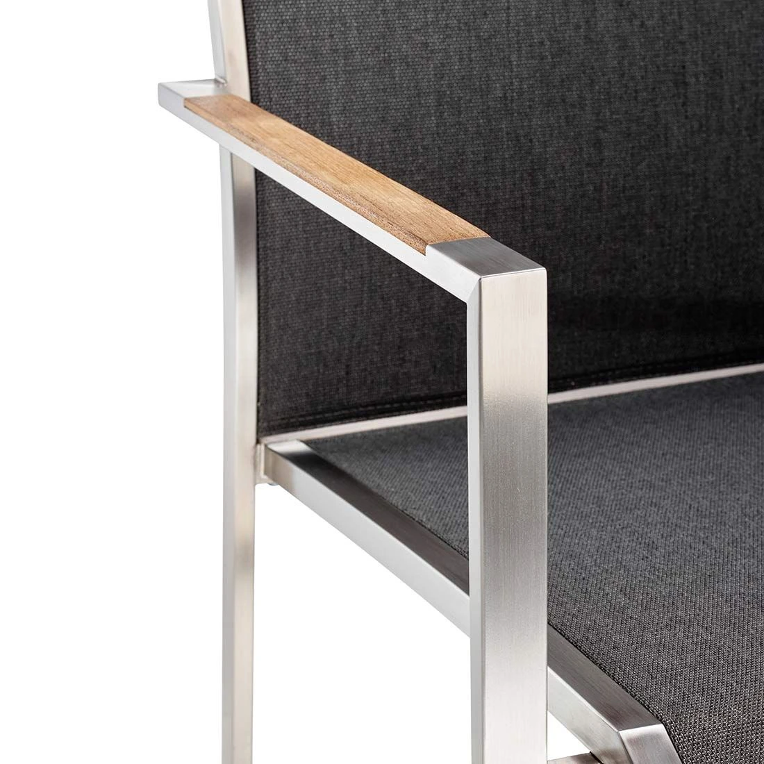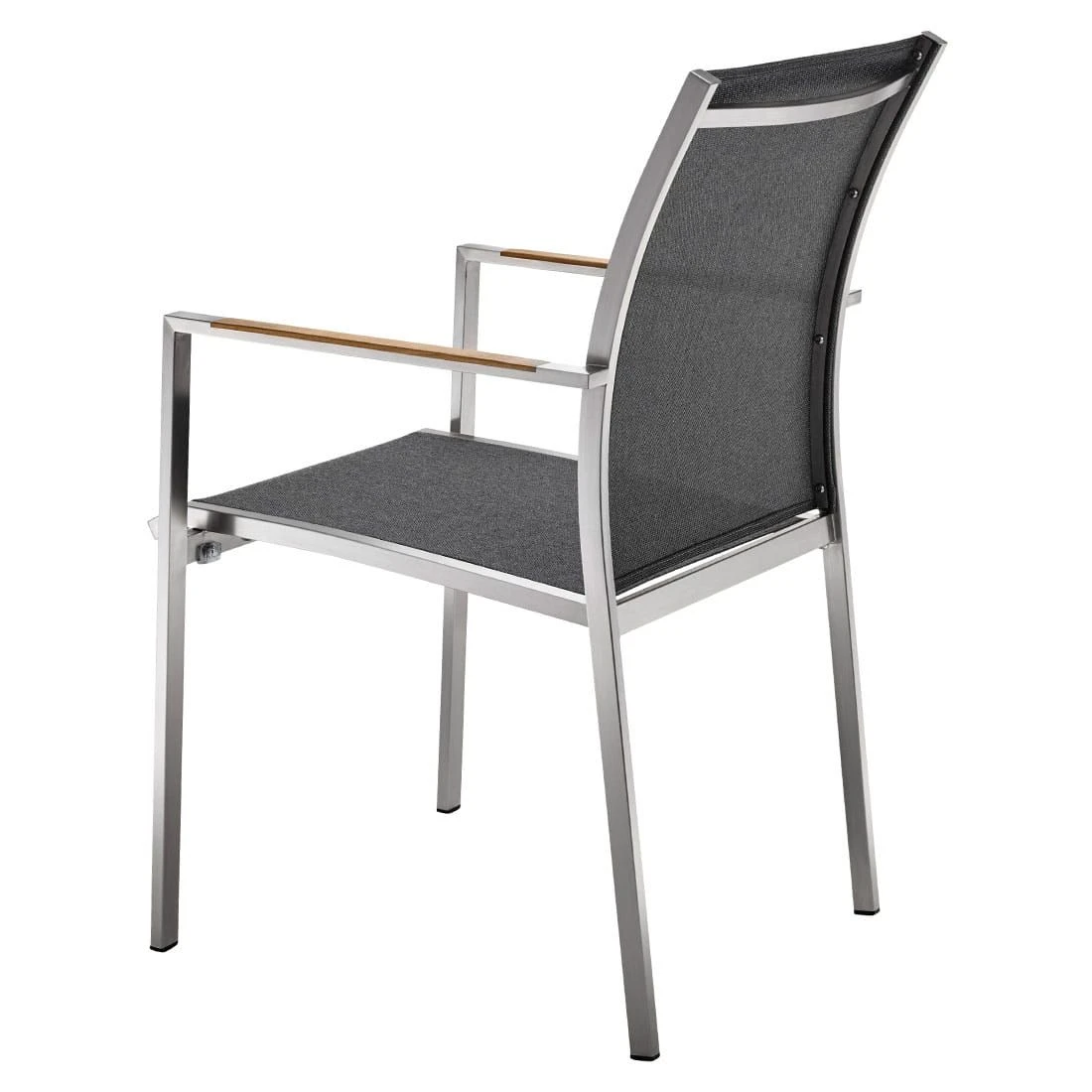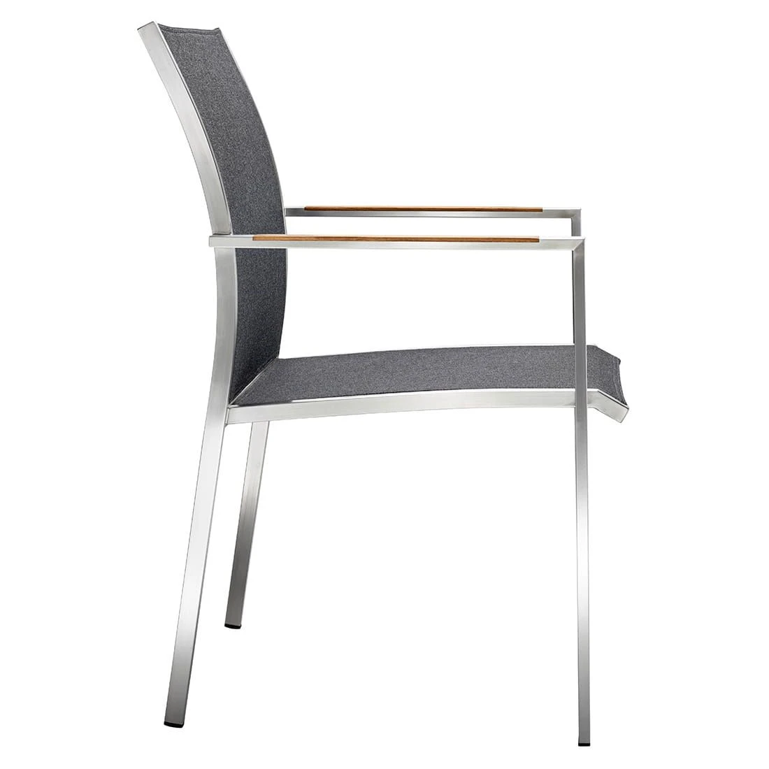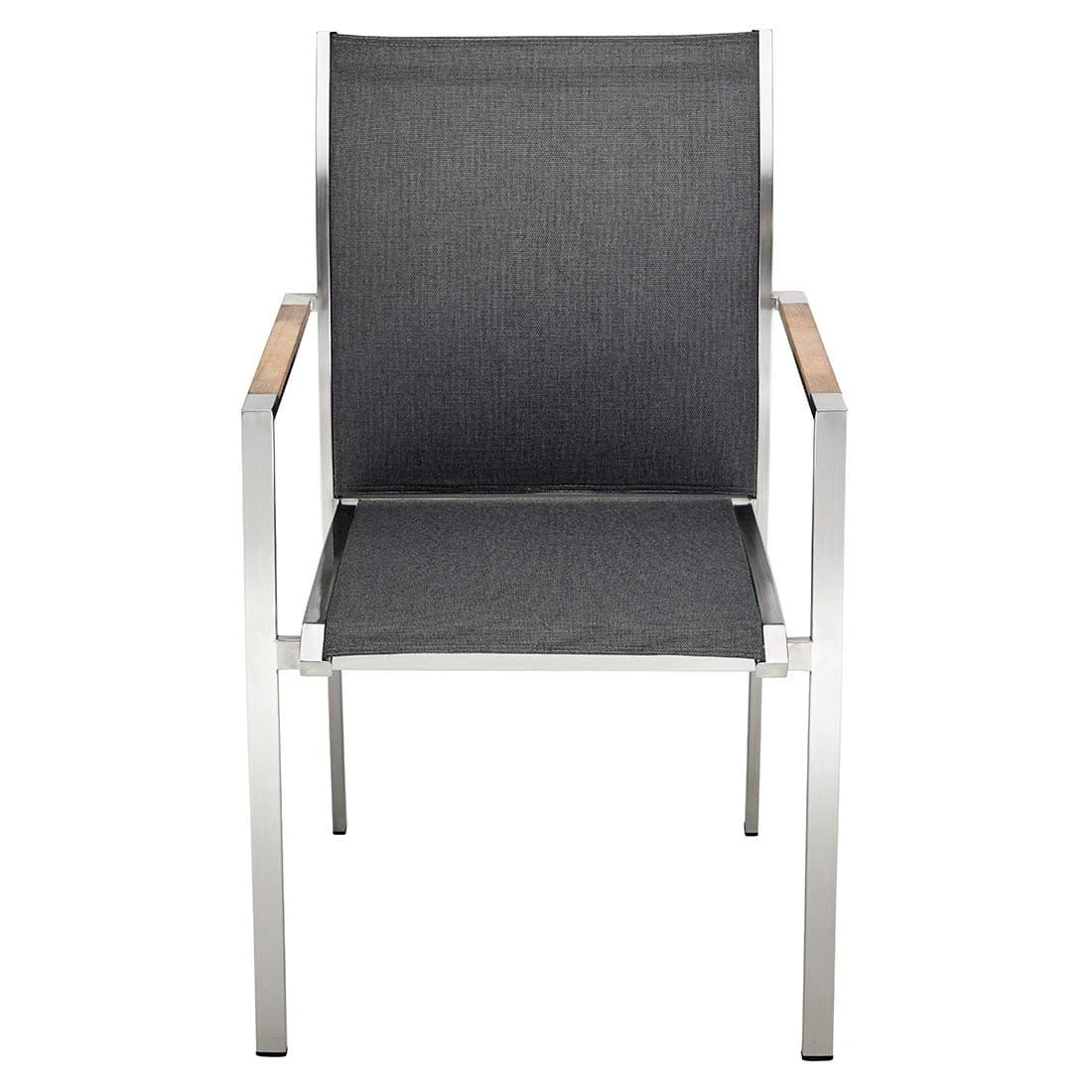 Das Gestell wird aus hochwertigem und rostfreiem Edelstahl hergestellt. Aufgrund des etwas höheren Eigengewichts, steht der Stapelsessel dadurch besonders stabil und windsicher auf der Terrasse.