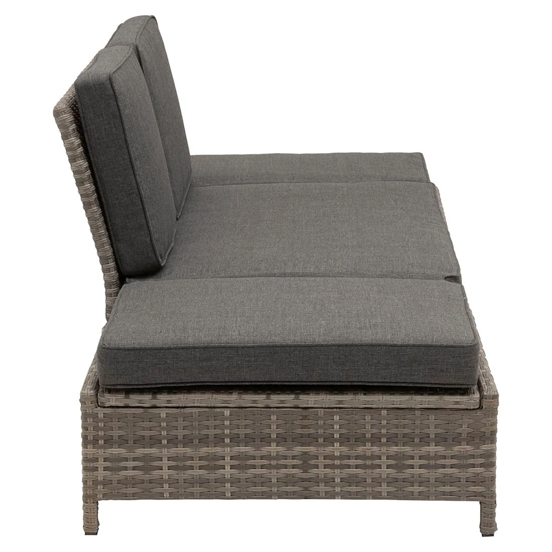 Als Gestellmaterial hat der Hersteller wertiges Aluminium gewählt. Der Korpus ist farblich in geschmackvollem Grau gestaltet. Die Sitzflächen werden aus Polyester gefertigt. Für eine längere Haltbarkeit empfehlen wir bei stärkerem oder lang anhaltendem Regen die abnehmbaren Kissen im Innenraum zu lagern.