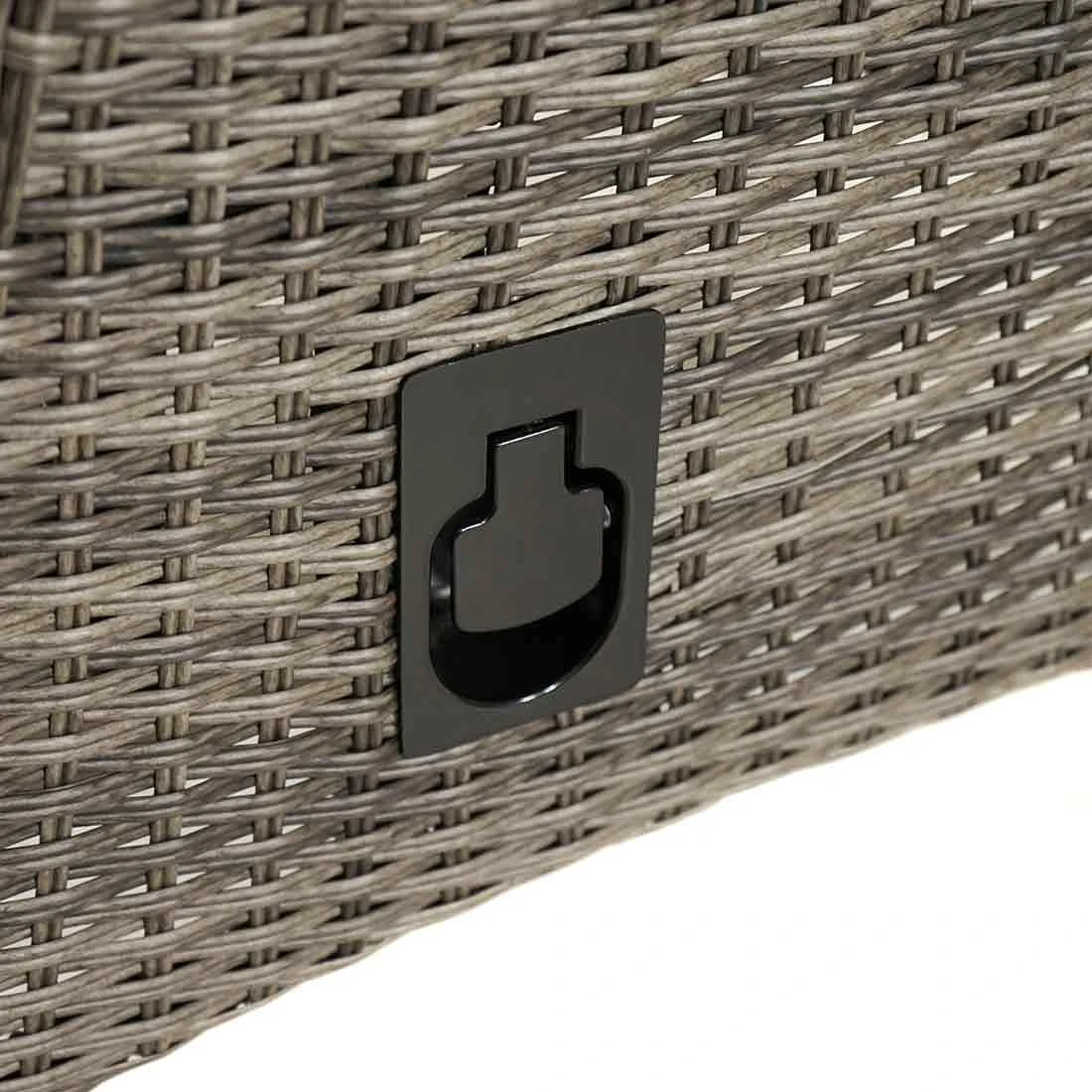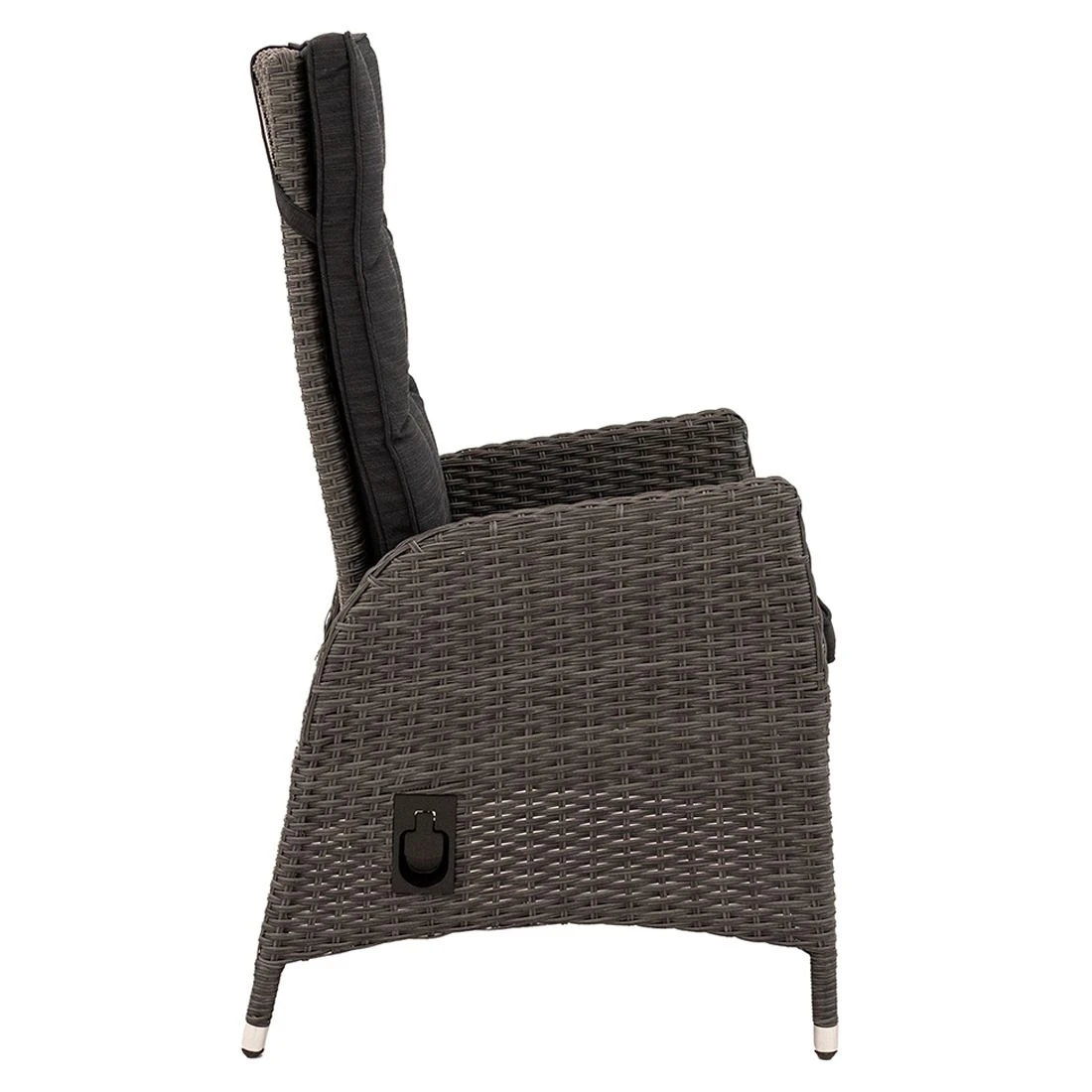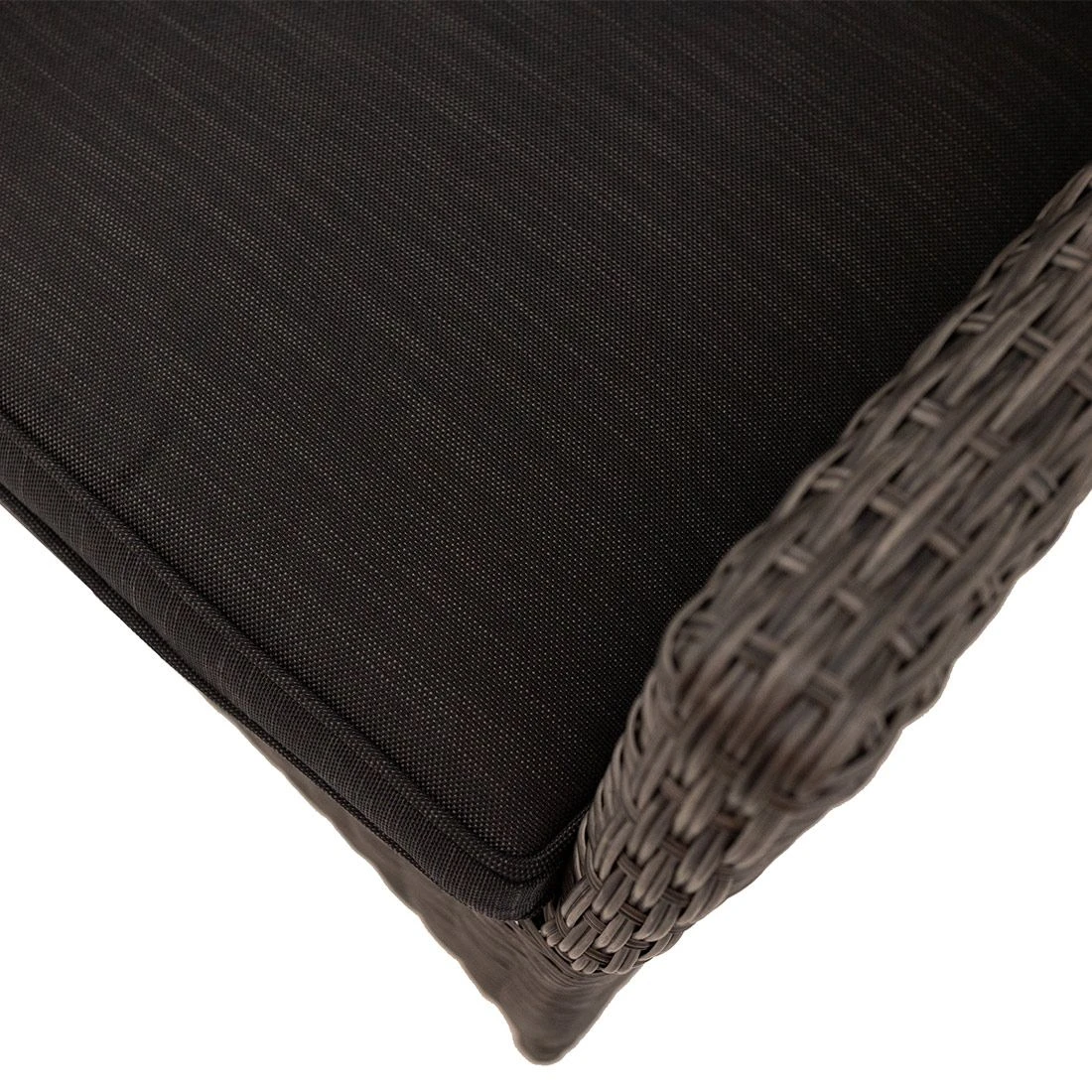 Für den Korpus und die Sitzfläche kommt Polyrattan-Geflecht zum Einsatz. Für die Herstellung des Gestells wird hochwertiges und wetterfestes Aluminium verwendet. Für eine attraktive Optik ist das Gestell im Farbton Braun-Meliert gehalten. Als hochwertiges Material für den Bezug kommt ein Polyester-Stoff zum Einsatz. Er ist sehr strapazierfähig und bietet somit die idealen Voraussetzungen für den Einsatz im Freien. Farblich begeistert der Bezug in elegantem Anthrazit. Damit der Gartensessel optisch ansprechend ist, sind der Korpus und die Sitzfläche im Farbton Grau-Braun-Meliert gehalten.