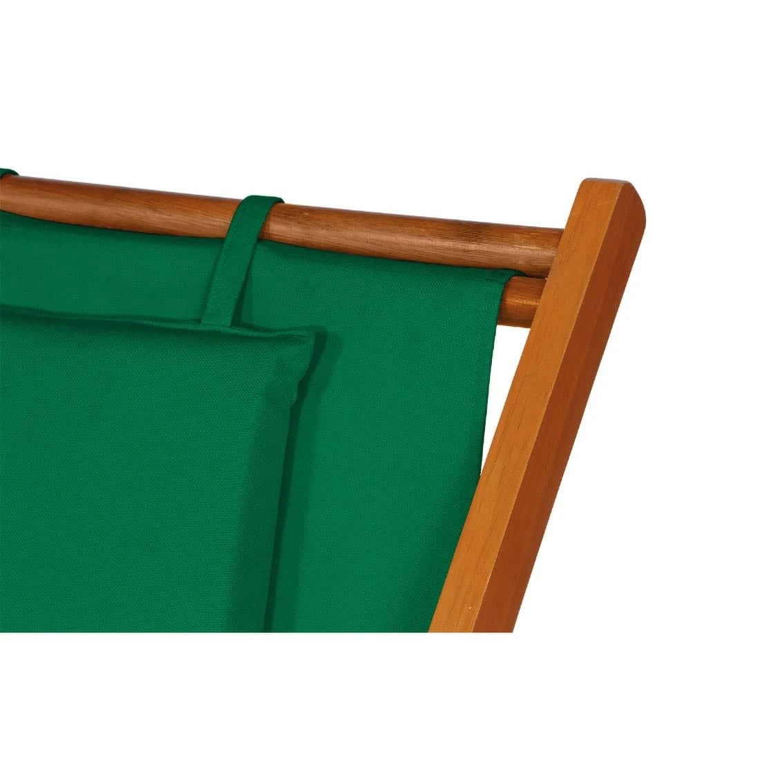 Das Gestell besteht aus langlebigem Holz. Für eine attraktive Optik ist das Gestell im Farbton Braun gehalten. Die Sitzfläche des Liegestuhls wird mit Polyester bespannt. Die Sitzfläche ist in ansprechendem Grün gehalten.