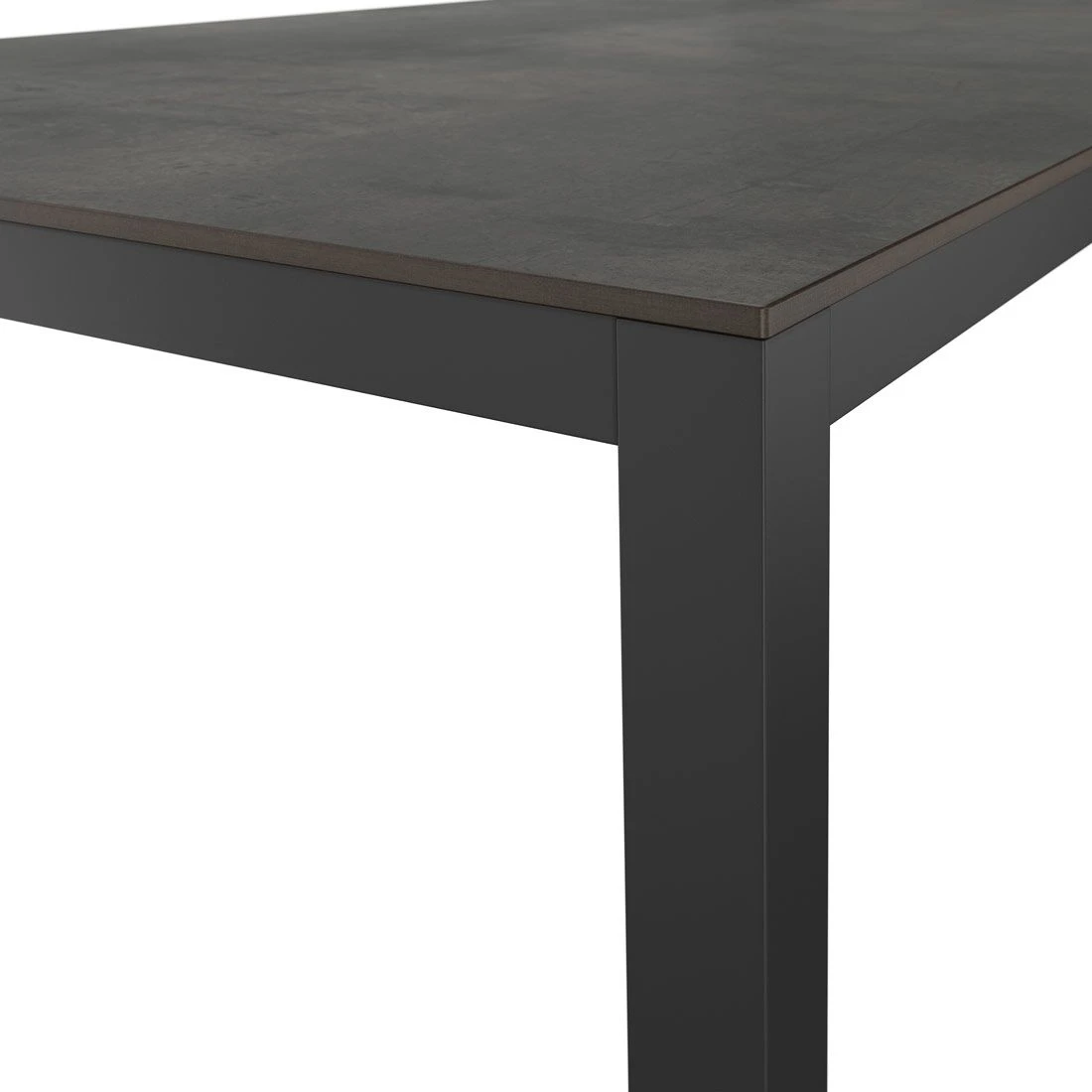 Zum Lieferumfang des Sets gehört auch ein praktischer Tisch. Dessen massive Tischplatte aus pflegeleichtem HPL-Kunststoffverbund ist im Besonderen für Gartenparties unter freiem Himmel und Mahlzeiten draußen wunderbar geeignet. Als klassische Design-Komponente fungiert das geradlinige Vierfußgestell. Der Tisch ist klassisch rechteckig gestaltet.