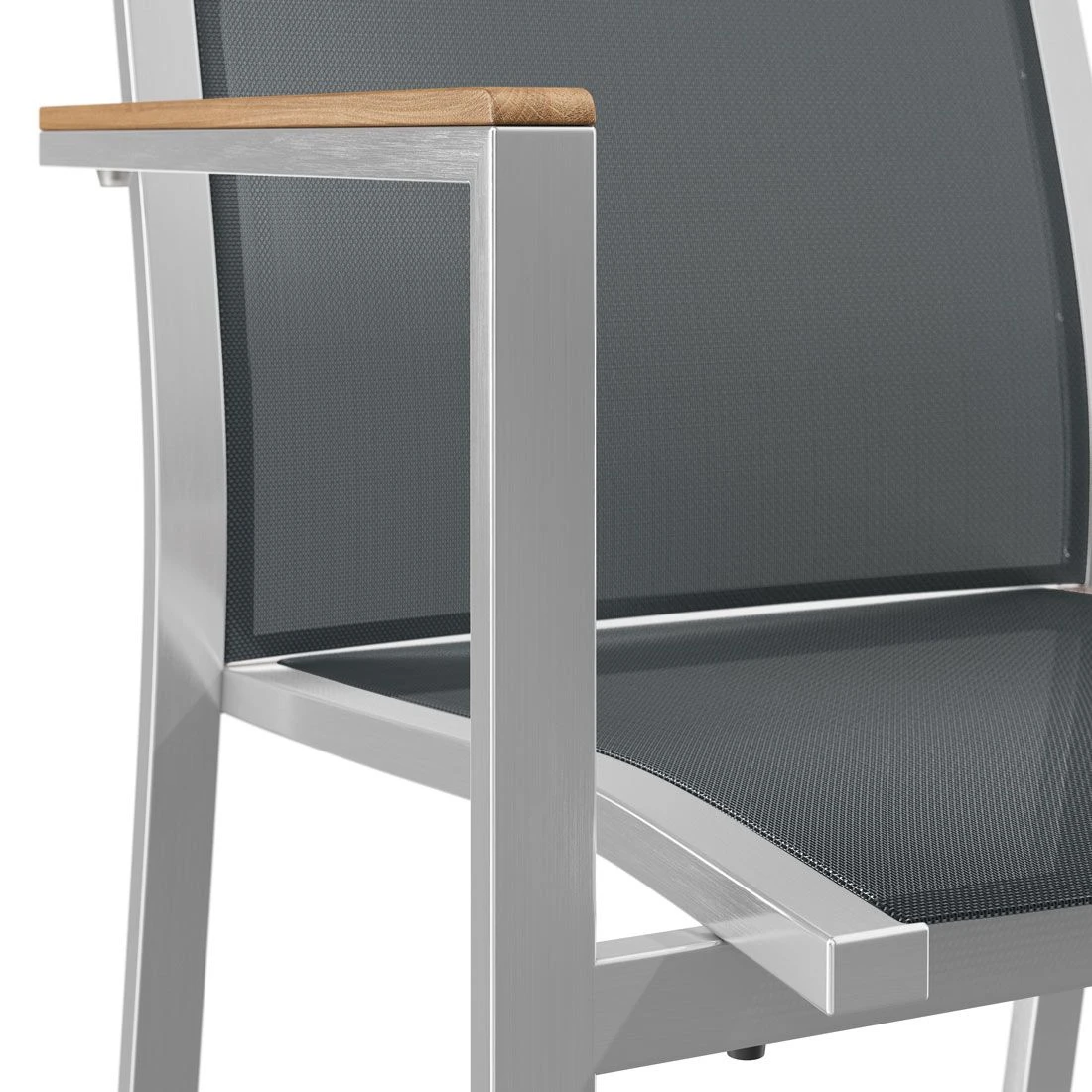 Ein weiteres Highlight des Stapelsessels ist die Bespannung mit Textilene in der Farbe Silbergrau. Dieser Bezugsstoff überzeugt durch eine hohe Robustheit gegenüber Hitze und Frost aus und ist leicht zu reinigen. Unser Tipp: Aufeinander gestapelt können auch mehrere Exemplare des Stapelsessels platzsparend aufbewahrt werden. Der hohe Sitzkomfort ergibt sich auch aus der Sitzbreite von 43,5 cm und einer Sitztiefe von 45 cm. Unterstützt wird dies zudem durch die bequeme Sitzhöhe von 45 cm.