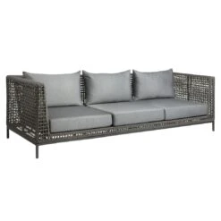 Das Gestell besteht aus pflegeleichtem und wetterfestem Aluminium. Für eine attraktive Optik ist das Gestell im Farbton Anthrazit gehalten. Hochwertiges Rope umgibt das robuste Gestell und verleiht dem Gartensofa damit einen ganz besonderen Look. Die Sitzfläche des Gartensofas ist bequem gepolstert. Als hochwertiges Material für die Bezüge kommt ein Polyacryl-Stoff zum Einsatz. Er ist sehr strapazierfähig und bietet somit die idealen Voraussetzungen für den Einsatz im Freien. Damit das Gartensofa optisch ansprechend ist, sind die Sitzfläche und der Bezug im Farbton Seidengrau gehalten.