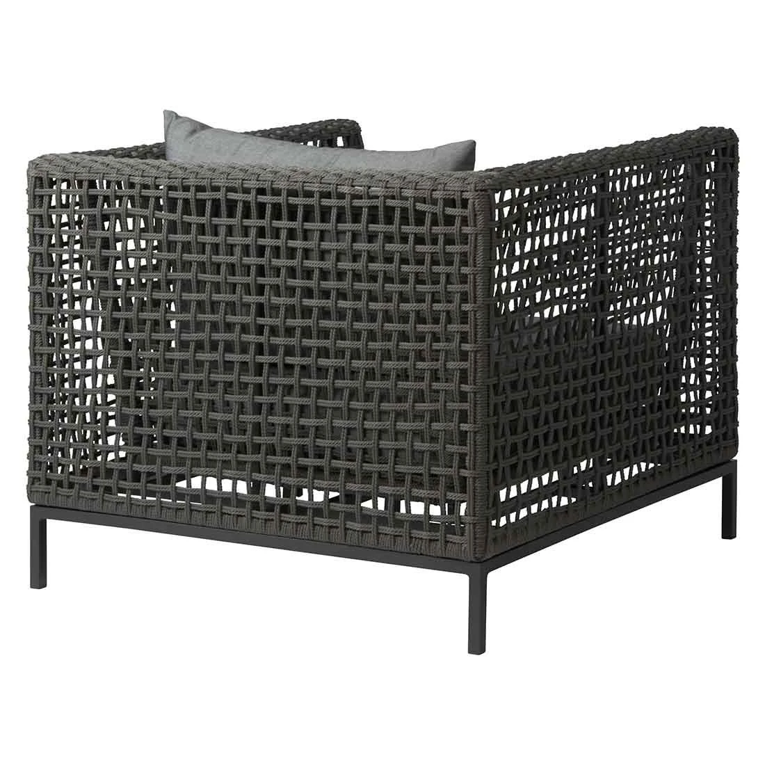 Das Gestell wird aus Aluminium in der Farbe Anthrazit gefertigt. Das geringe Eigengewicht des Materials macht den Loungesessel zu einem robusten, aber dennoch leicht zu transportierenden Sitzmöbel auf Ihrer Terrasse. Hochwertiges Rope umgibt das robuste Gestell und verleiht dem Loungesessel damit einen ganz besonderen Look.