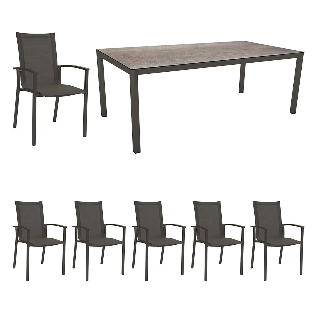 Sehr praktisch: Die Stapelbarkeit der Stühle ermöglicht es Ihnen, diese besonders platzsparend aufzubewahren. Insgesamt bietet Ihnen das Gartenmöbel-Set 6 Sitzplätze. Für eine längere Lebensdauer und Sauberkeit Ihrer Gartenmöbel empfehlen wir die Verwendung einer Schutzhülle.