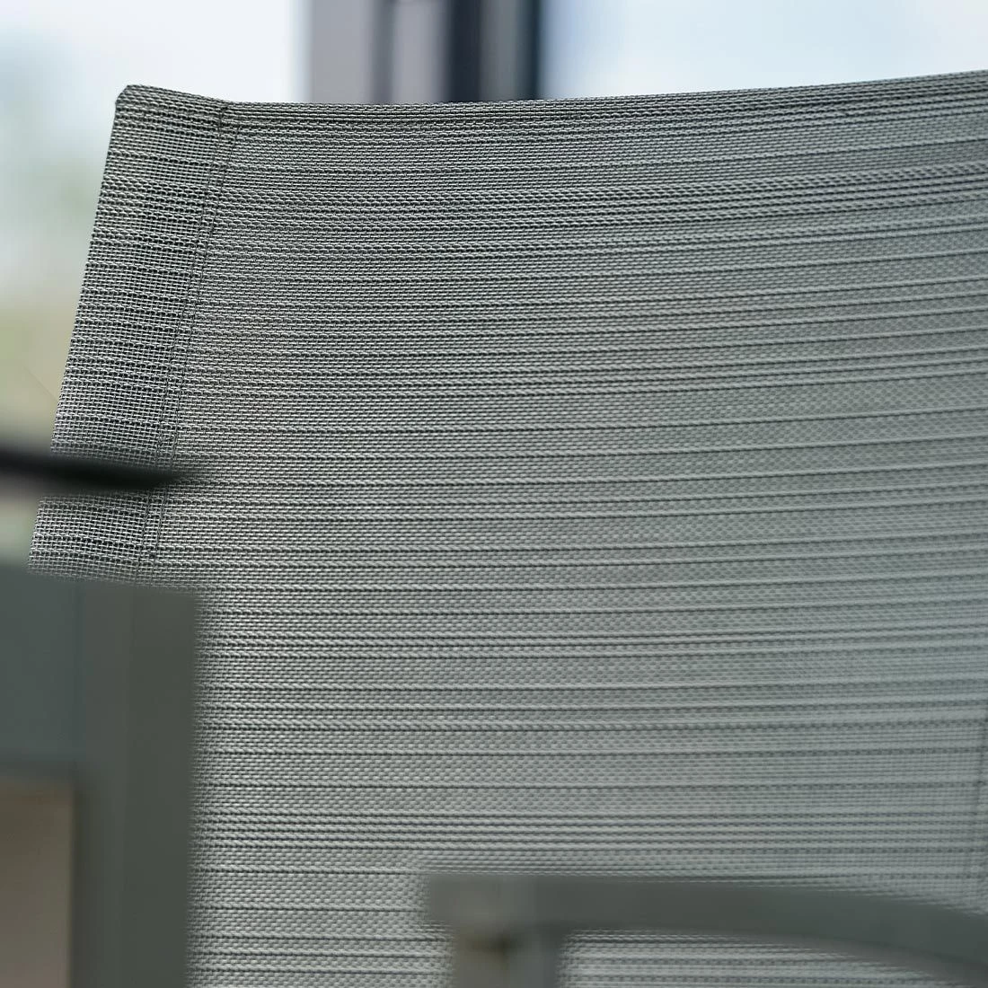 Das Gestell ist aus Aluminium gefertigt. Dadurch lassen sich die Möbel leicht von einem Standort zum nächsten transportieren und sind dennoch sehr stabil. Optisch ansprechend ist die Farbgebung der Gestelle in Anthrazit. Ein ist die Bespannung der Sitzflächen mit Textilene. Dieses Material zeichnet sich durch eine hohe Robustheit gegenüber Hitze und Frost aus und ist leicht zu reinigen. Die Farbgebung der Sitzfläche ist Karbon. Zum Lieferumfang des Sets gehört auch ein praktischer Tisch. Dessen stabile Tischplatte aus leicht zu pflegendem HPL-Kunststoffverbund ist im Besonderen für Veranstaltungen im Freien und Mahlzeiten draußen bestens geeignet. Passend zum Gesamtbild des Gartenmöbel-Sets begeistert die Tischplatte mit ihrer Farbgebung in Smoky. Als klassische Design-Komponente fungiert das geradlinige Vierfußgestell.
