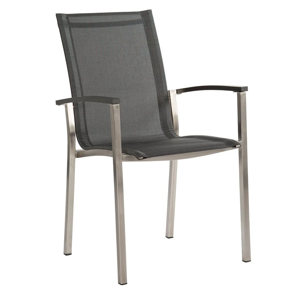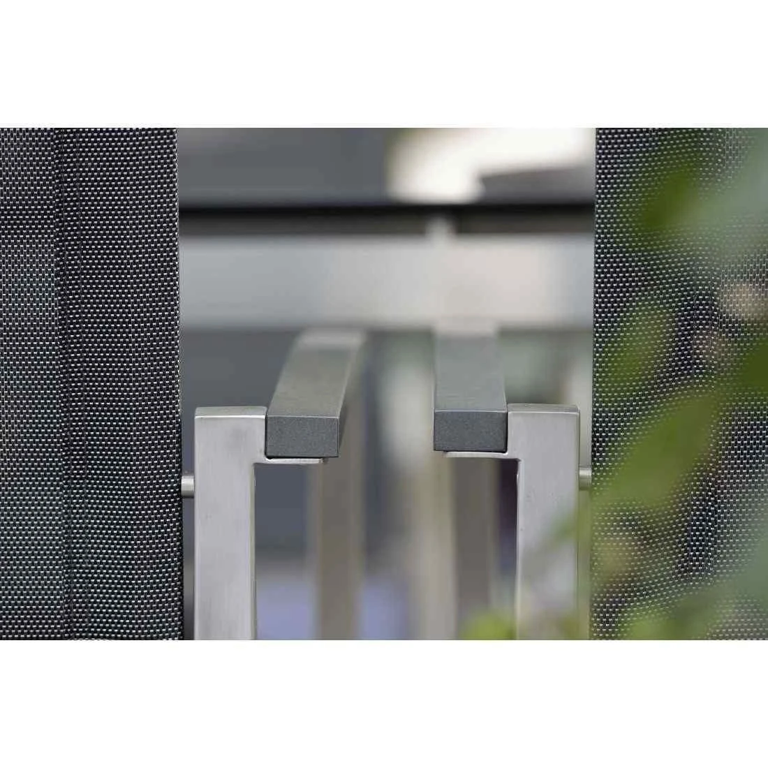 Für die Bespannung der Sitzfläche verlässt sich der Hersteller auf hochwertiges Textilene. Es zeichnet sich durch eine hohe Robustheit gegenüber Hitze und Frost aus und ist leicht zu reinigen. Unser Tipp: Wenn Sie mehrere Exemplare des Modells Evoee besitzen, können Sie diese äußerst kompakt und platzsparend aufbewahren, indem Sie diese stapeln. Der hohe Sitzkomfort ergibt sich auch aus der Sitzbreite von 42,5 cm und einer Sitztiefe von 47 cm. Unterstützt wird dies zudem durch die bequeme Sitzhöhe von 47 cm.