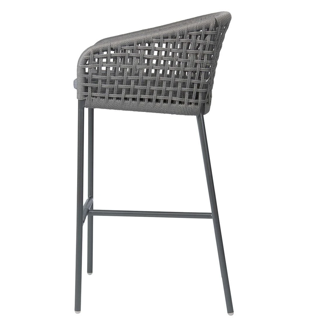 Für die Herstellung des Gestells wird hochwertiges und wetterfestes Aluminium verwendet. Für eine attraktive Optik ist das Gestell im Farbton Anthrazit gehalten. Hochwertiges Rope umgibt das robuste Gestell und verleiht Garten-Barstuhl damit einen ganz besonderen Look. Als hochwertiges Material für die Bezüge kommt ein Polyacryl-Stoff zum Einsatz. Er ist sehr strapazierfähig und bietet somit die idealen Voraussetzungen für den Einsatz im Freien. Damit Garten-Barstuhl optisch ansprechend ist, sind die Sitzfläche und der Bezug im Farbton Seidengrau gehalten.