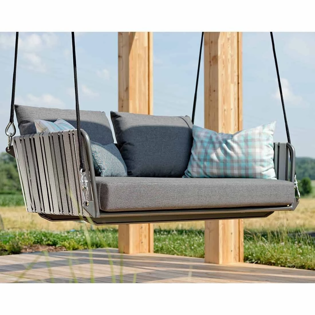 Das Gestell besteht aus pflegeleichtem und wetterfestem Aluminium. Für eine attraktive Optik ist das Gestell im Farbton Anthrazit gehalten. Hochwertiges Rope umgibt das robuste Gestell und verleiht dem Hängesessel damit einen ganz besonderen Look. Die Sitzfläche verfügt über eine angenehme Polsterung. Der Bezug des Hängesessels ist aus Polyacryl gefertigt. Dieses Material begeistert mit einer hohen Witterungsbeständigkeit. Regen kann dem robusten Outdoor-Stoff kaum etwas anhaben. Damit der Hängesessel optisch ansprechend ist, sind die Sitzfläche und der Bezug im Farbton Seidengrau gehalten.