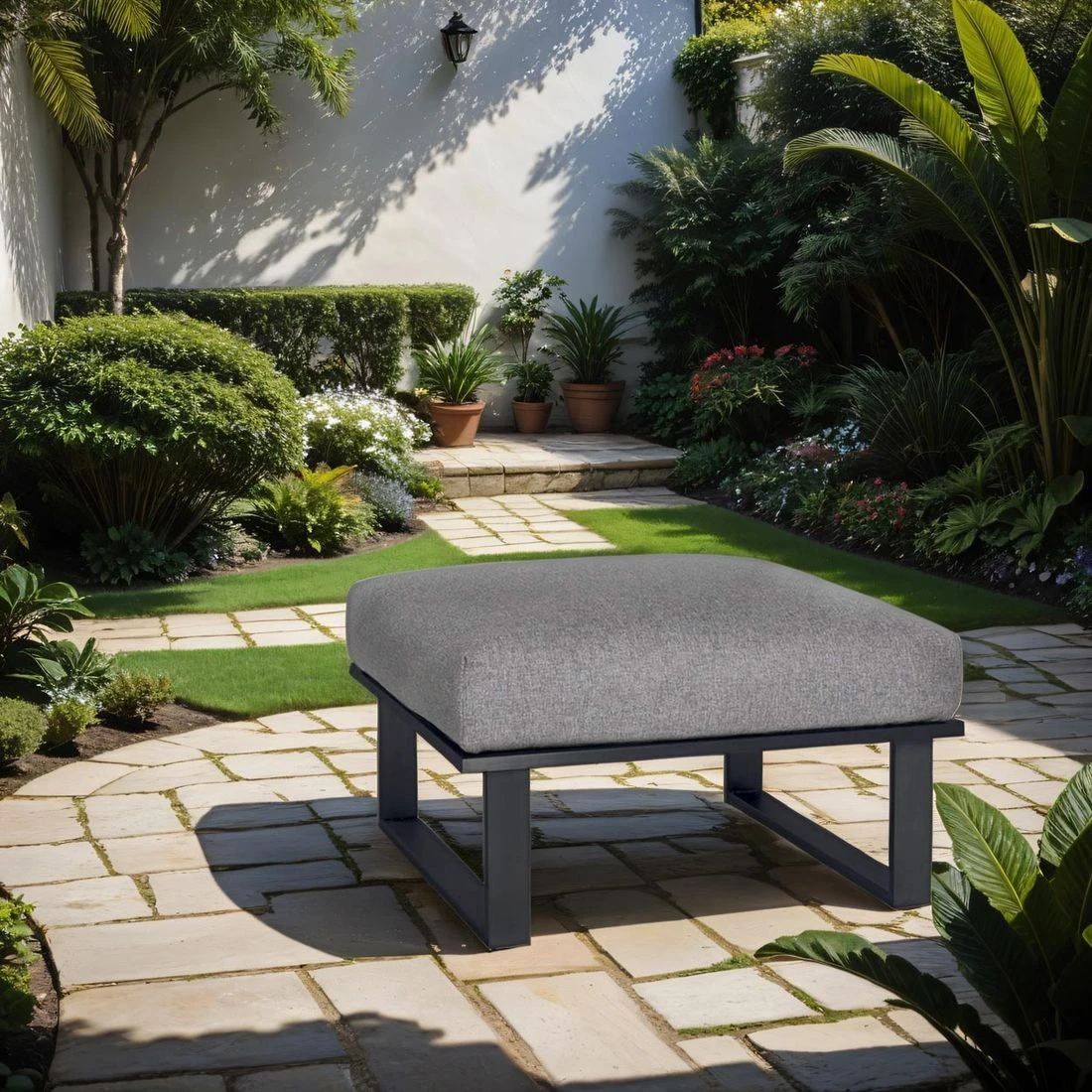 Das Gestell wird aus Edelstahl gefertigt. Das Eigengewicht des Materials macht den Loungehocker zu einem robusten, stabilen Sitzmöbel auf Ihrer Terrasse.