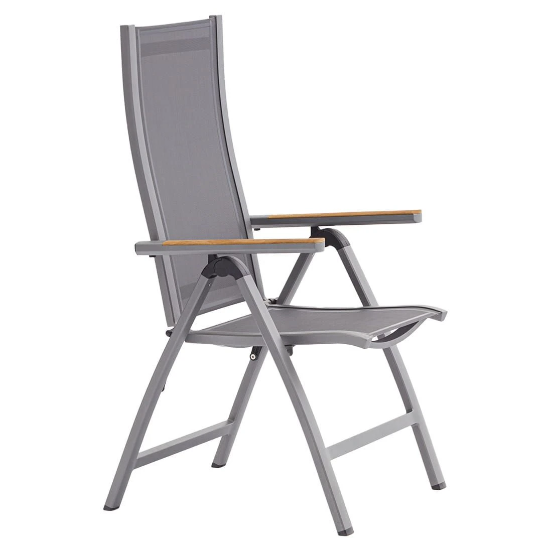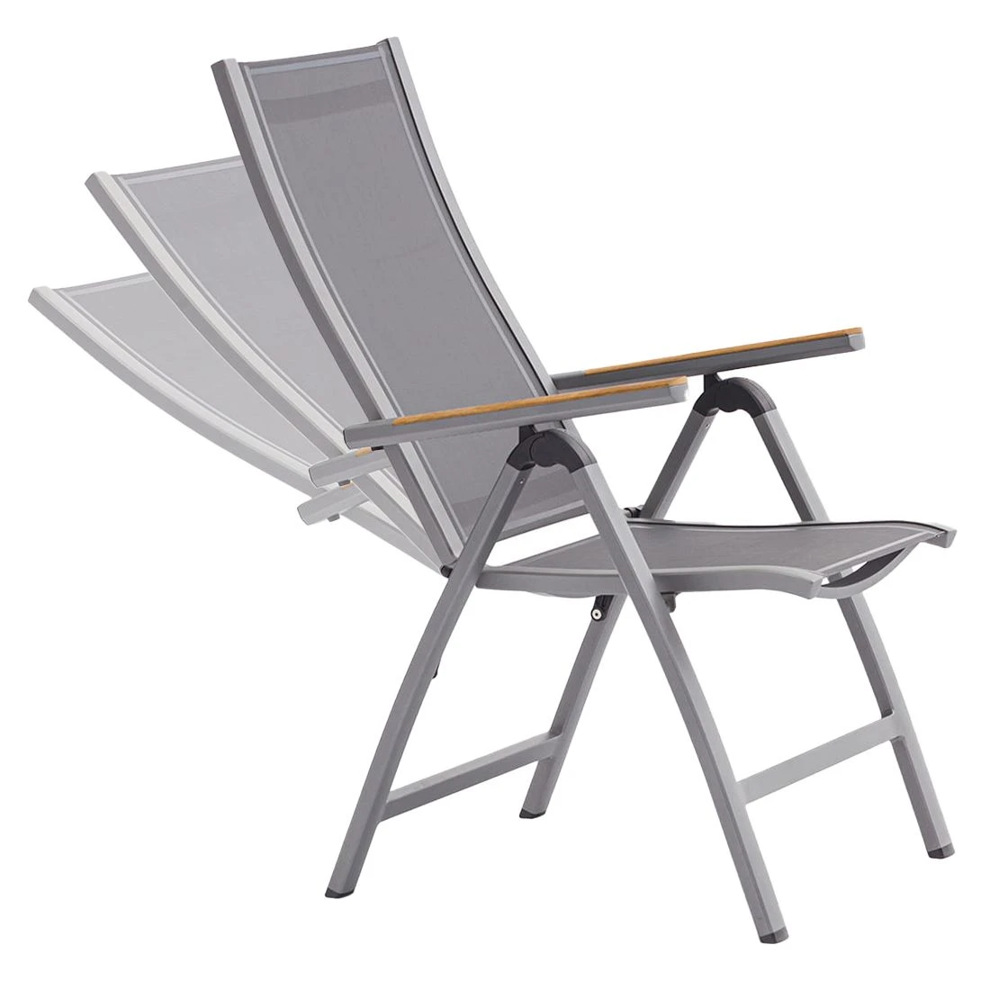 Das Gestell wird aus Aluminium in der Farbe Elegance Grey gefertigt. Das geringe Eigengewicht des Materials macht den Klappsessel zu einem robusten, aber dennoch leicht zu transportierenden Sitzmöbel auf Ihrer Terrasse.