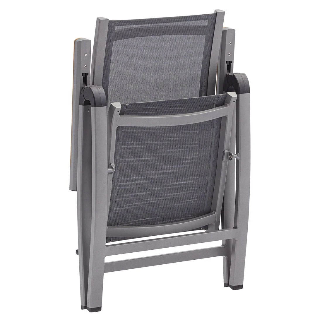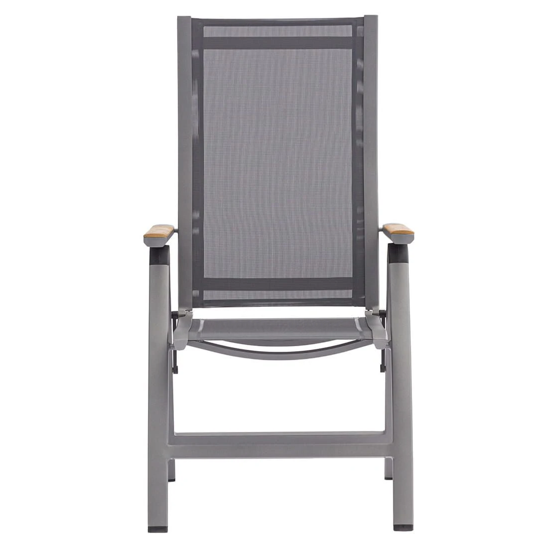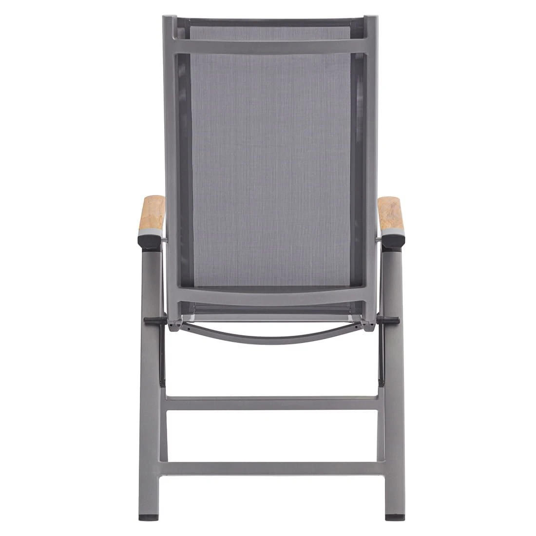 Ein weiterer Pluspunkt des Klappsessels ist die Bespannung mit Textilene in der Farbe Dark Grey. Dieser Bezugsstoff überzeugt durch eine hohe Robustheit gegenüber Hitze und Frost aus und ist leicht zu reinigen. Der Klappsessel ist mittels Rasterschienen verstellbar und kann daher nach Belieben eingestellt werden. Mit einer Belastbarkeit von 100 kg ist dieses Sitzmöbel äußerst robust. Die Sitzfläche hat mit 45 cm eine komfortable Höhe.