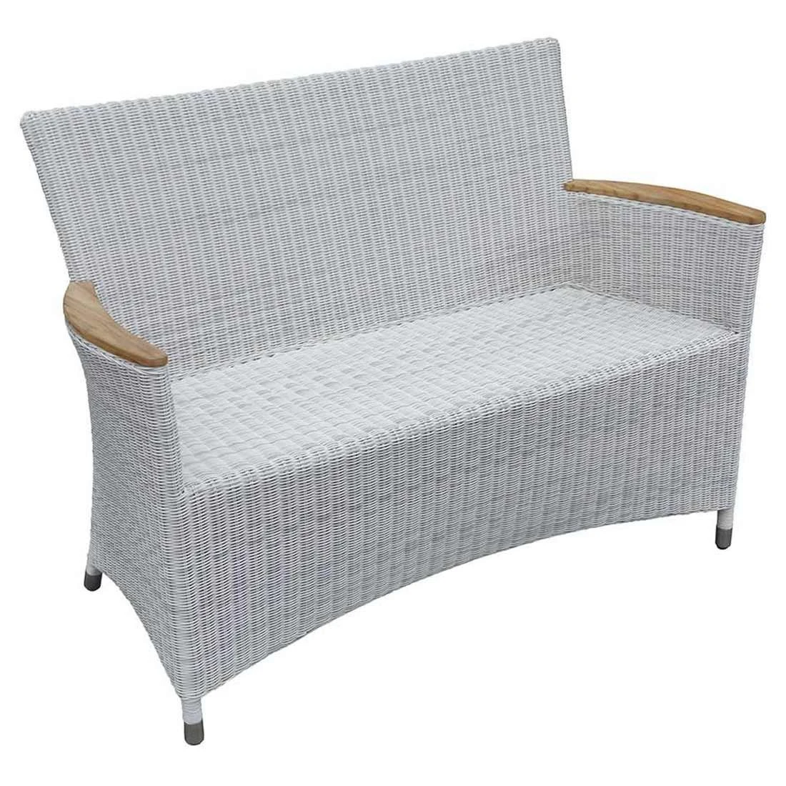Der Korpus und die Sitzfläche bestehen aus Polyrattan-Geflecht. Das Gestell wird aus Aluminium gefertigt. Das geringe Eigengewicht des Materials macht die Gartenbank zu einem robusten, aber dennoch leicht zu transportierenden Sitzmöbel auf Ihrer Terrasse. Für ein perfekt stimmiges Gesamtbild sorgt die einheitliche Farbgebung in stilvollem Silkwhite.