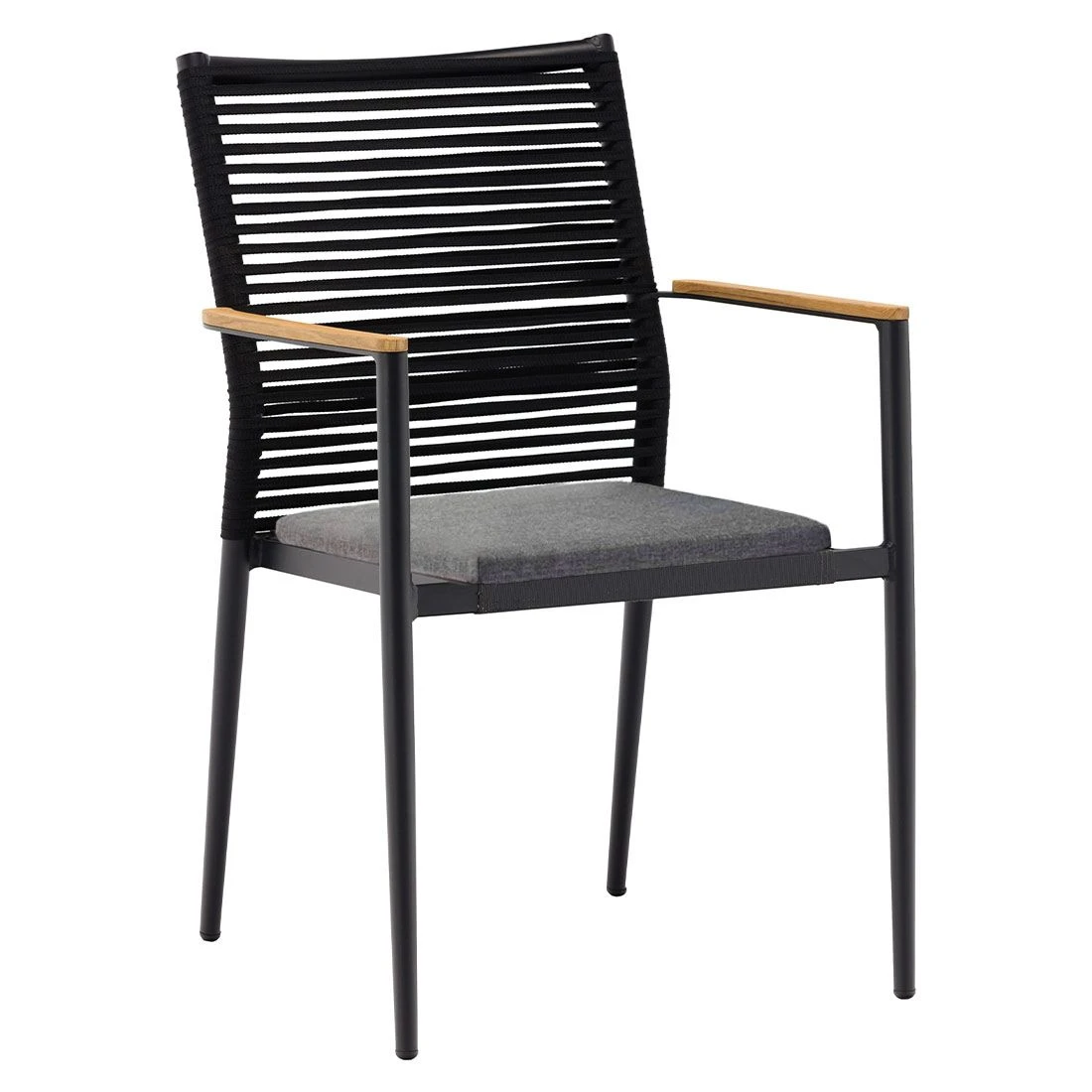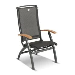 Die robusten Metallgestelle aus Aluminium sind pflegeleicht und garantieren gleichzeitig eine hohe Stabilität. Darüber hinaus gewährleistet dieses leichte Material, dass Sie die Möbel bequem transportieren können. Optisch ansprechend ist die Farbgebung der Gestelle in Graphit. Ein weiterer Pluspunkt ist die Bespannung der Sitzflächen mit Textilene. Dieses Material zeichnet sich durch eine hohe Robustheit gegenüber Hitze und Frost aus und ist leicht zu reinigen. Die Farbgebung der Sitzfläche ist Dark Grey. Im Setangebot enthalten ist auch ein passender Tisch. Die Tischplatte wird aus recyceltem, also wiederverwertetem, Teak gefertigt. Hier werden bewusst Altersspuren wie Kerben oder Nagellöcher erhalten, so dass jeder Gartentisch ein wahres Unikat ist. Passend zum Gesamtbild des Gartenmöbel-Sets begeistert die Tischplatte mit ihrer Farbgebung in Natur. Als klassische Design-Komponente fungiert das geradlinige Vierfußgestell. Mit der rechteckigen Form lässt sich der Tisch platzsparend in Ecken oder an Häuserwänden aufstellen.
